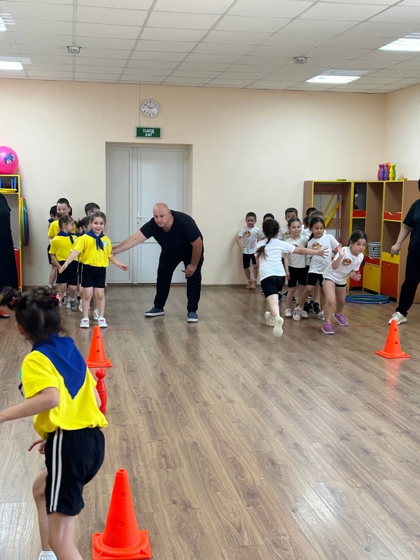 Затем Хетаг Омарович вместе с инструктором по физической культуре Дауевым Таймуразом Кимовичем провели спортивную разминку для детей и несколько эстафет.